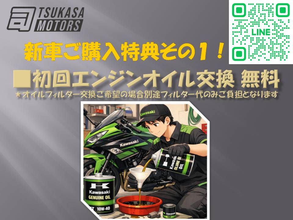 新車ご購入後の初回エンジンオイル交換を無料にて対応いたします。